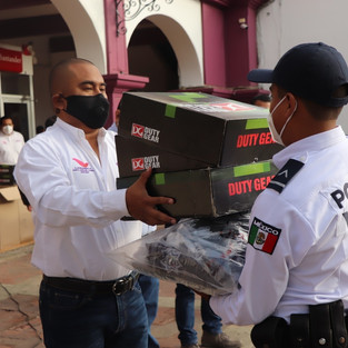 Además de la entrega de uniformes, los elementos policíacos recibieron apoyos alimentarios.